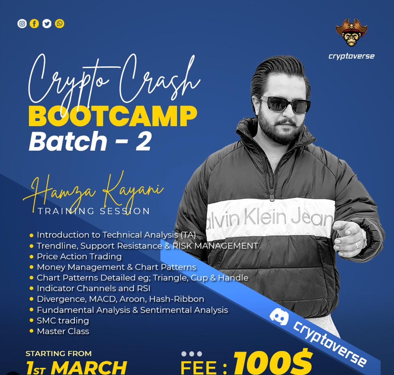 Join Hamza Kiyani Bootcamp, Founder & CEO of Crypto Verse, with 8+ years of trading expertise, in an intensive bootcamp designed for crypto enthusiasts ready to dominate the market.